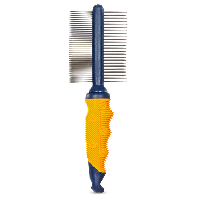 Give your pet the glam treatment with the Arm & Hammer™ Simply Glam Dual-Sided Dog Comb. Whether you're working through tangles, managing shedding, or checking for fleas, this 2-in-1 comb does it all—with a little extra flair. One side features fine teeth for precision grooming, de-fleaing, or detailing around the face and paws. The standard side works through thicker tangles and helps reduce shedding—making it a go-to for grooming dogs. While you brush, our patented scent transfer technology releases a gentle Sweet Apple & Rose fragrance into your dog’s coat, delivering up to 2,000 strokes of long-lasting scent. (It is recommended that you store your grooming tools in the original box to preserve the fragrance.)