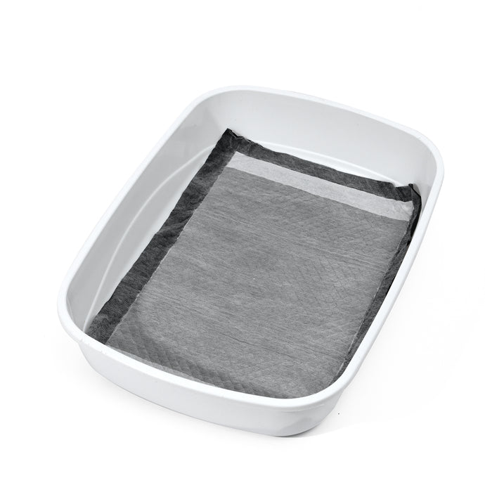 For litter box systems with a tray, slide one pad into the base tray of your litter box system, soft side up.